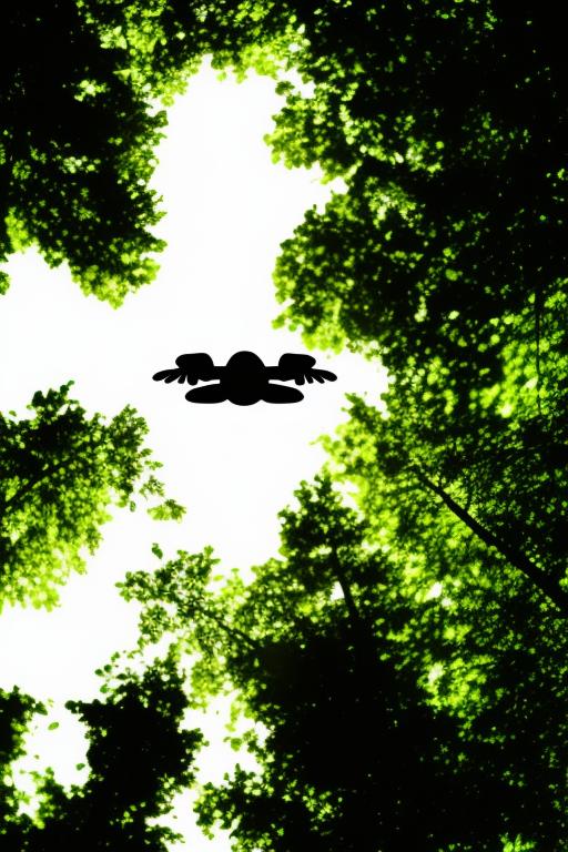 A dog is flying above the trees