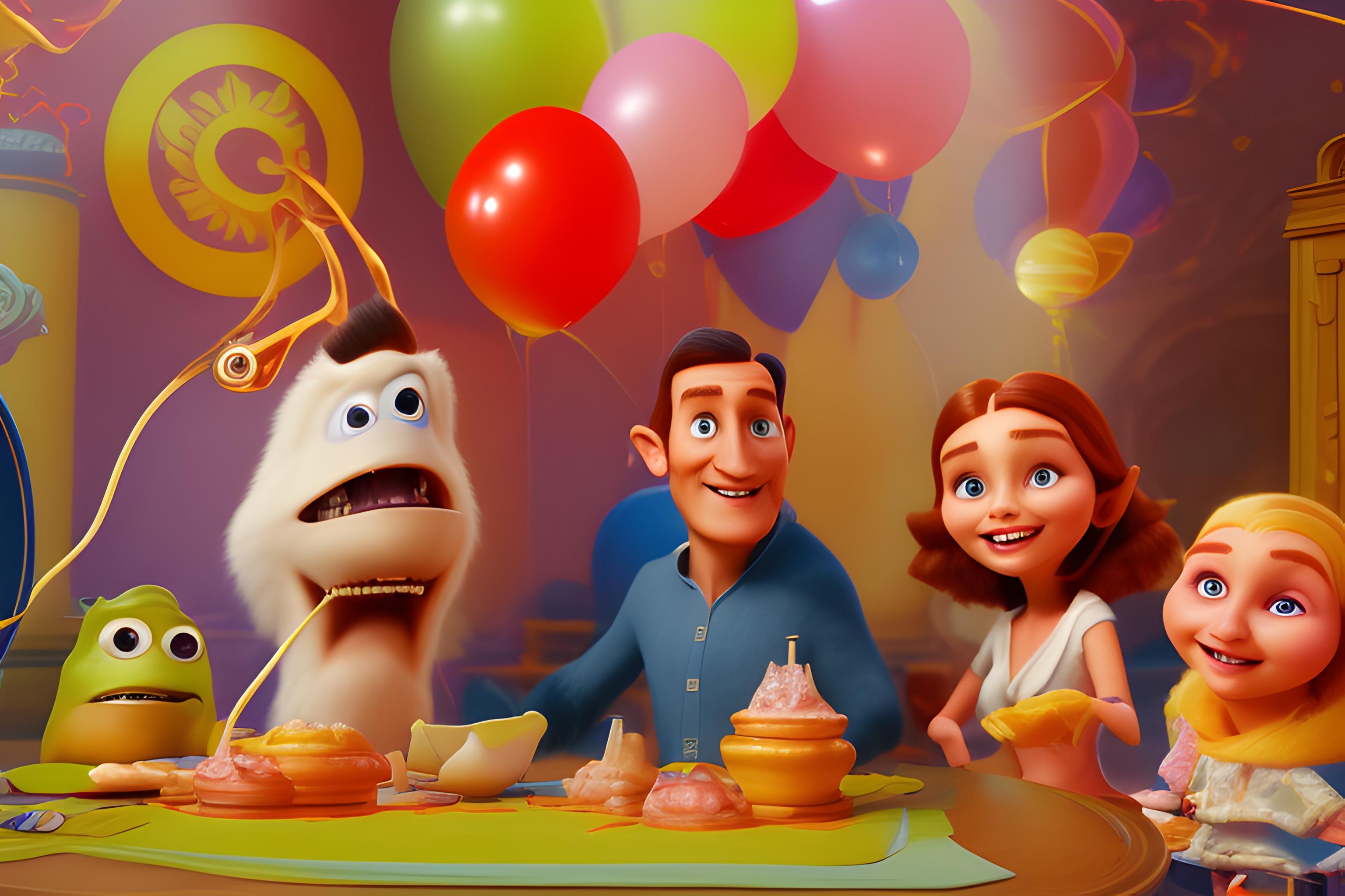 Объединить два изображения в стиле Disney-Pixar,где папа смотрит на своего сына и жену
