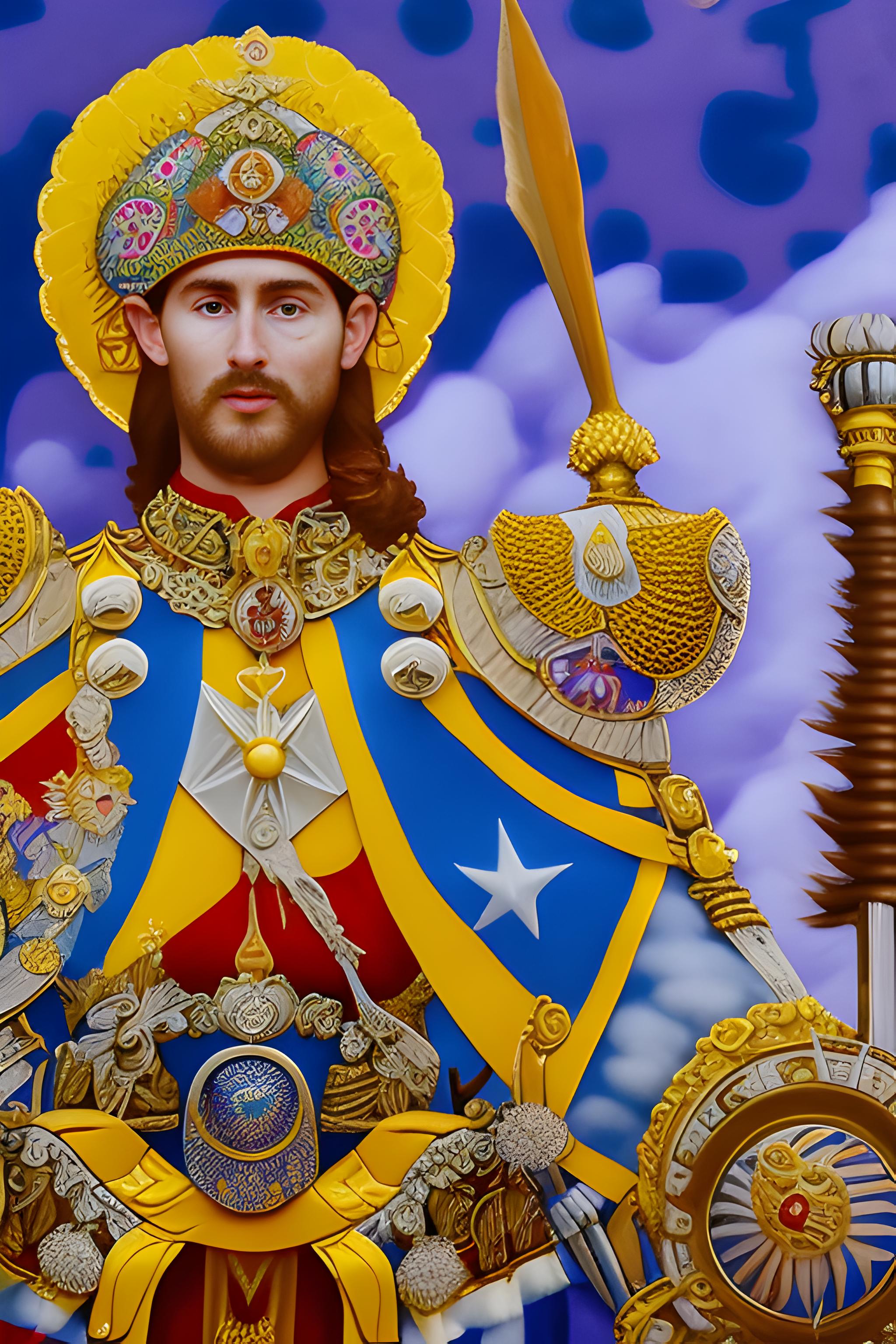 Создай фото, где в галерее висит картина,с моим изображением, и мужчина сидит перед ней.