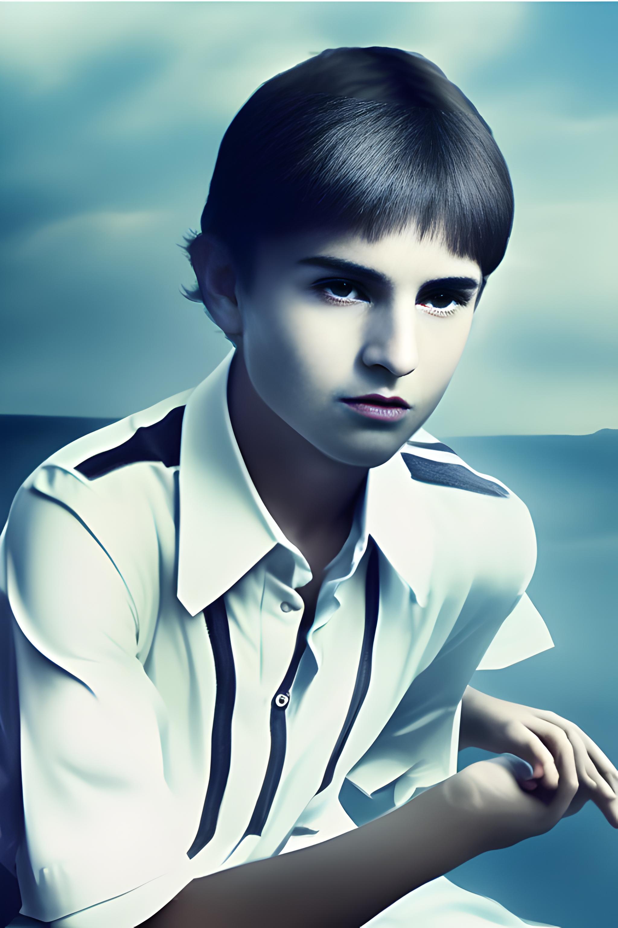 «Создайте сцену в галерее современного искусства, используя прилагаемое изображение лица и внешности девушки, не меняя …