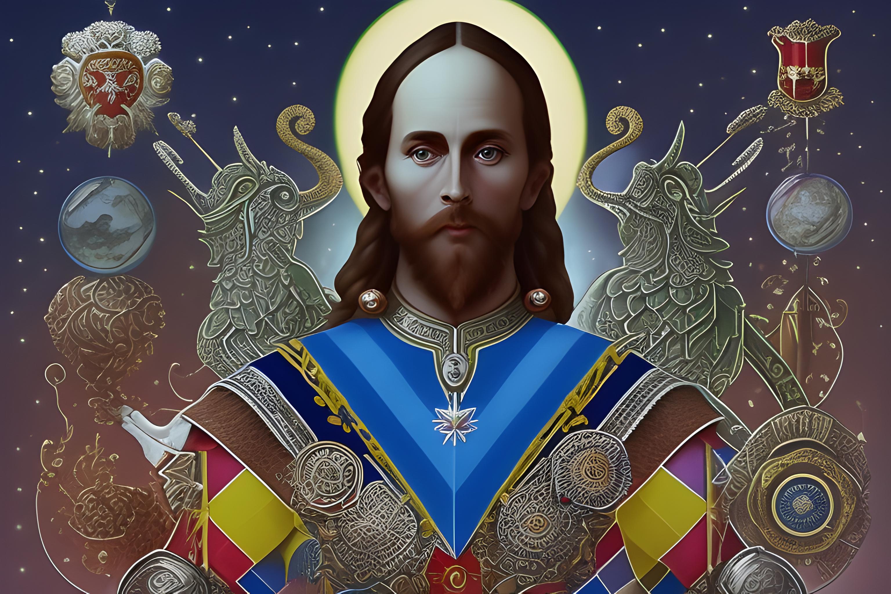 создай фото где в галерее висит картина с моим изображением, и мужчина в военной форме сидит перед ней смотрит на карти…