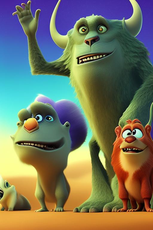 Сделай изображение в стиле Disney- pixar, где кот смотрит на меня с неба