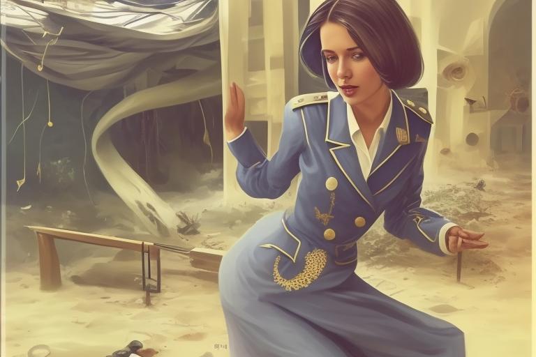 Создайте сцену в армейском блиндаже, используя прилагаемое изображение лица и внешности девушки, на ни 1% не меняя её ч…