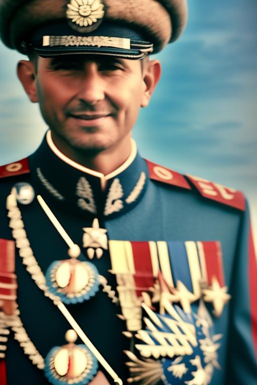создать фотку где висит портрет и мужчина военный смотрит на этот портрет