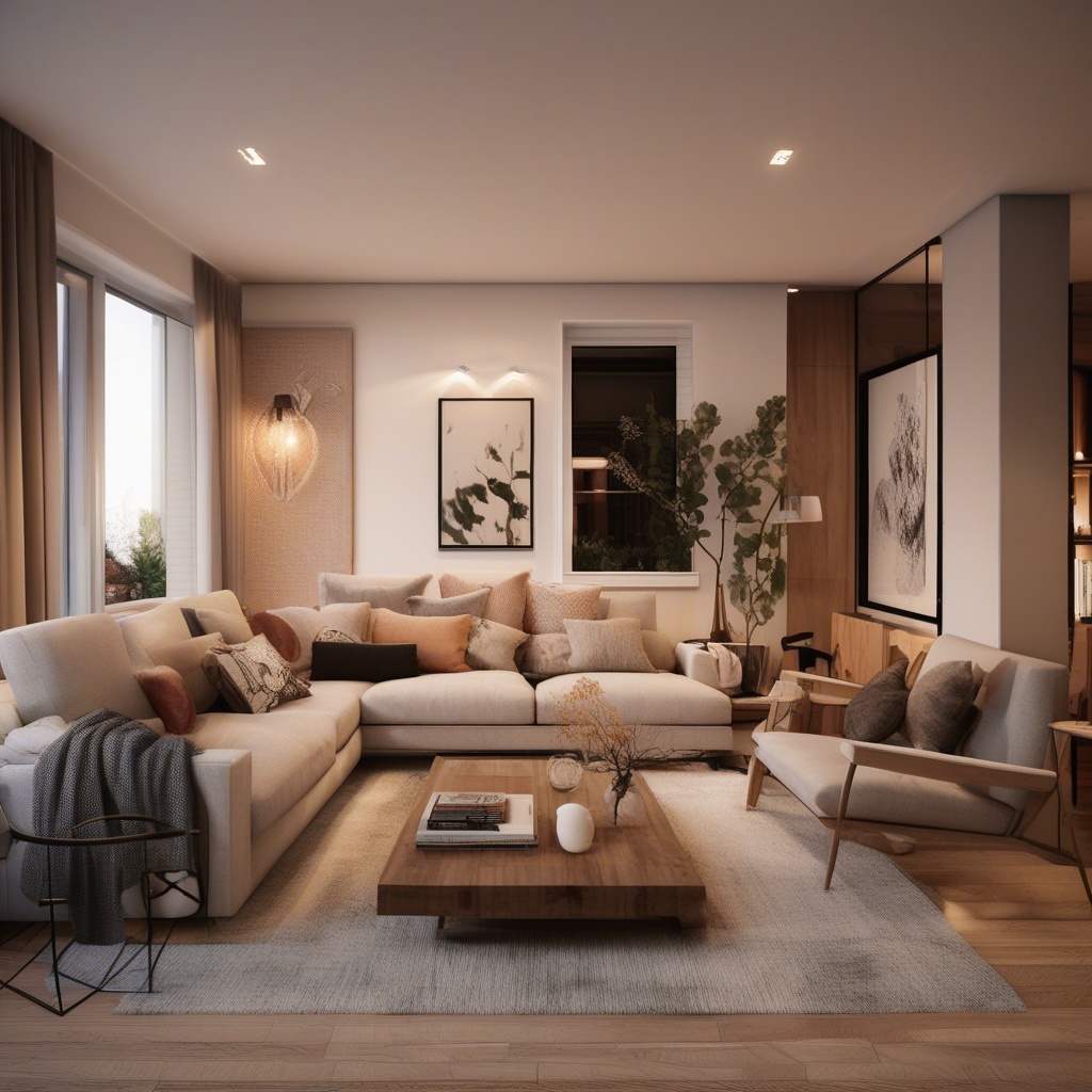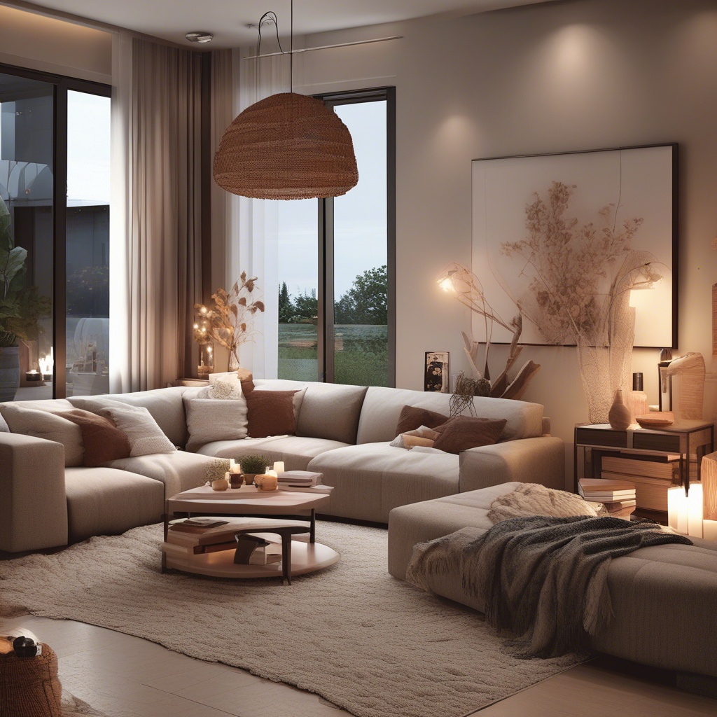 a white cat with blue eyes. the cat sleeping on a blanket. the blanket should have star patterns. the blanket should be on the living room floor. the living room should be with white tiles. highly detailed image, digital painting, art station, concept art, smooth, sharp focus, illustration