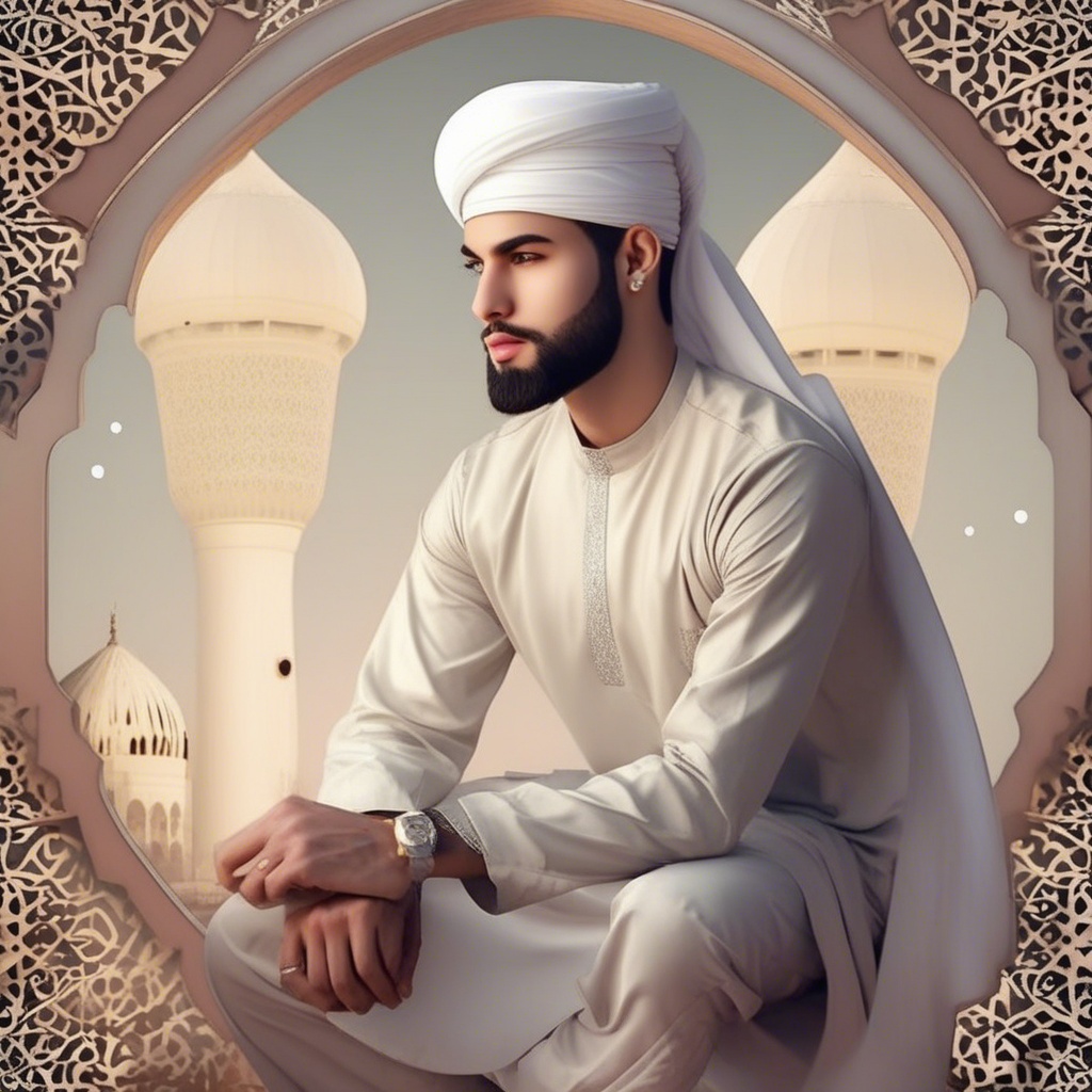 fantasy picture of large rugged handsome man looking at mirror, and he sees her ugly face.