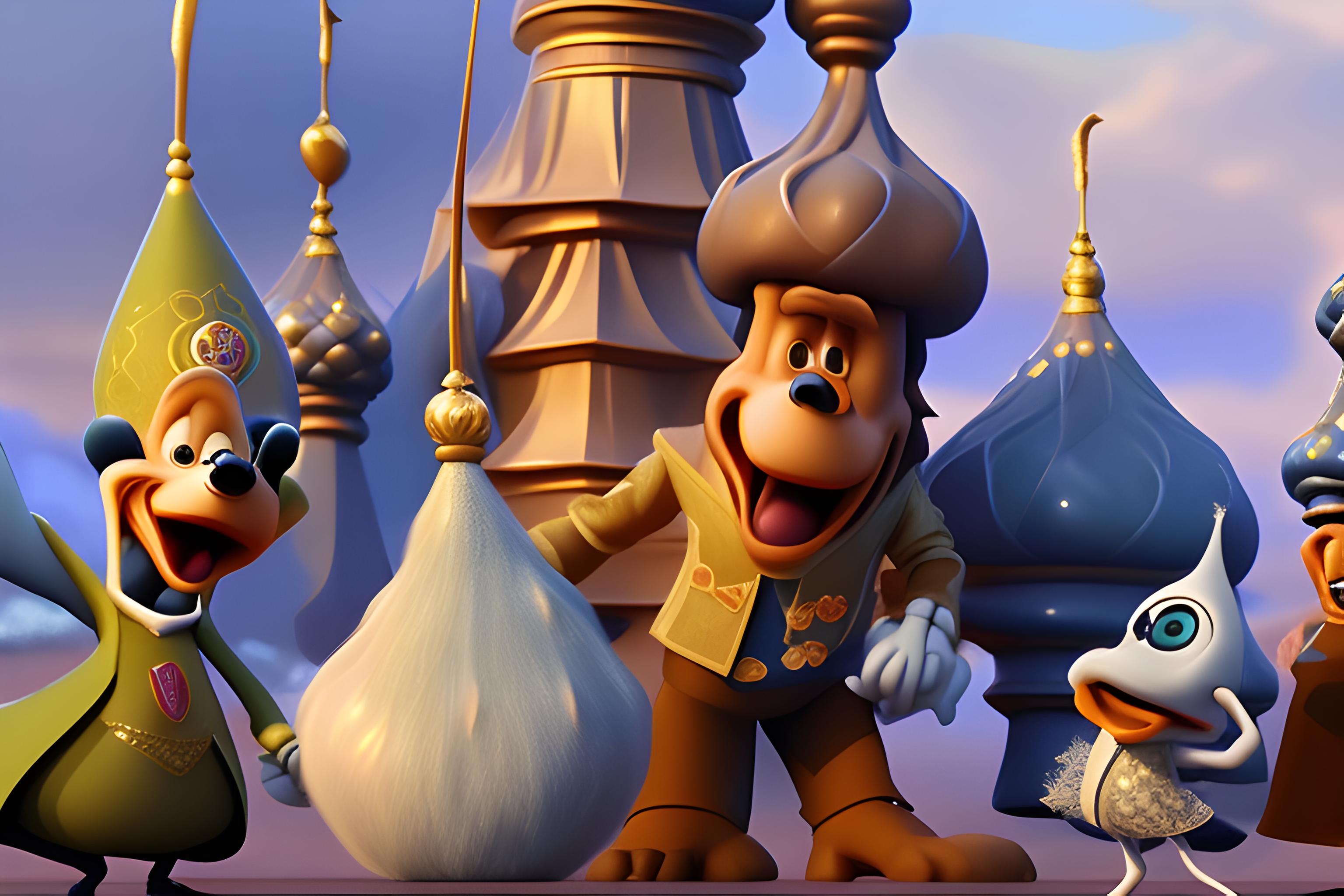 Объедени два изображения в стиле disney-pixar, где бабушка смотрит на мальчика с неба
