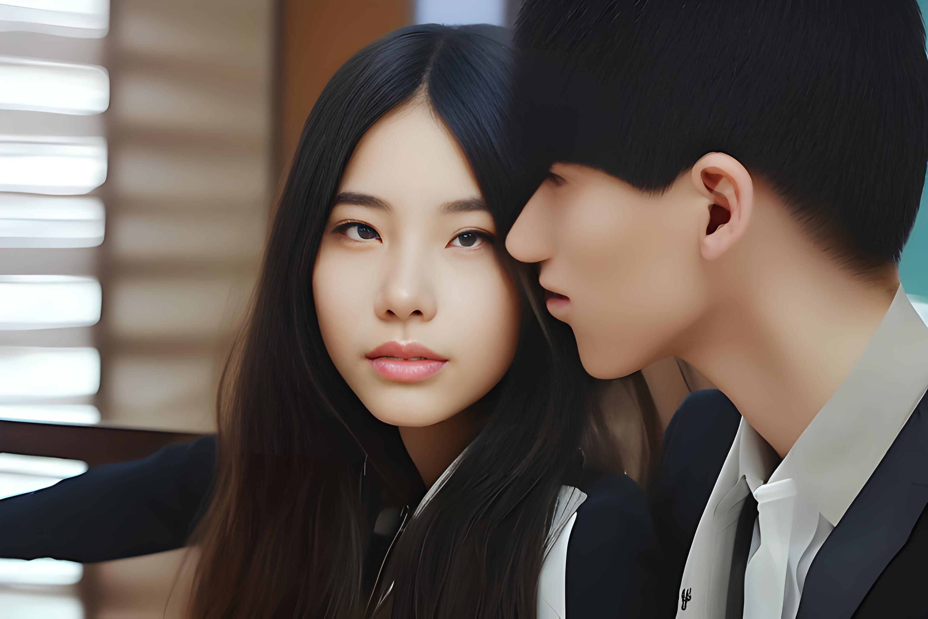 @^-稚: 手机拍摄,亚洲女性,18- 22岁,黑色短发加小辫子,身着日系超短破jk服,衣服在滴水,正对着正坐在凳子上,双腿着黑色蕾丝丝袜外开,腰往前突,似内急状,双手紧抓大腿,脸上有汗水,整体环境为校园寝室,比例9:16,生成10张不同类型的。
