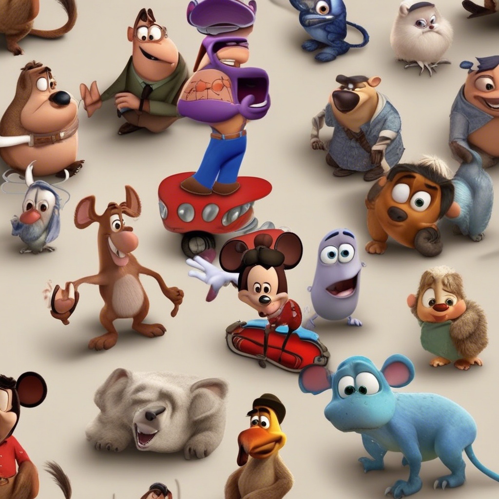 A poster for a Disney or Pixar-style cartoon.about her cat, her name is Anfisa. the cat is grey with white stripes, has a white belly and paws, a nose half black and half pink, and green eyes. he loves to eat, to climb into different boxes. He also loves to hunt very much