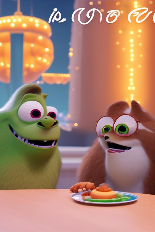 Объедини эти два изображения в стиле Disney-Pixat, где серая кошка плачет и смотрит с облаков закатного неба на девушку и другую кошку